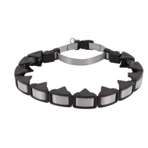 The Natural Control Training Collar stops pulling by mimicking the natural behavior correction techniques used by mother dogs with their pups. The rounded teeth of the collar combine with the martingale function to create a gentle pinching action that interrupts a dogs unwanted behavior when engaged. When relaxed, the collar is both durable and comfortable. The interwoven nylon through the links creates a modern and approachable appearance.